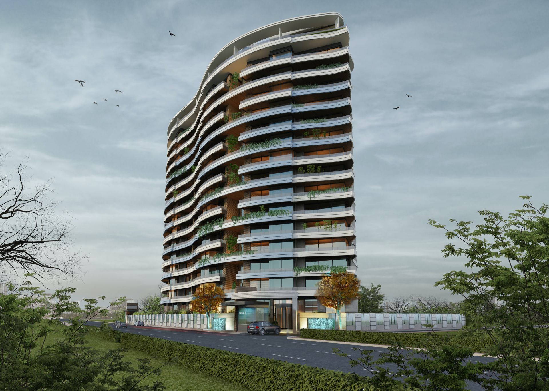 Binanın ön cephesi boyunca, dört dairenin ortak kullanımına ait 50-60 m²'lik eğrisel formda geniş kat bahçeleri tasarlanmış, bu sayede doğanın ve yeşilin bina içerisinde sürekliliği sağlanmıştır. Binadaki teraslar önü kapanmayacak Erciyes Dağı manzarasına sahiptir. Kat merdiveni cam ile çerçevelenmiş böylece teraslardan gelip kat holüne kadar yayılan yeşil dokunun merdiven ile görsel ilişkisi sağlanmıştır. 70 m² salonu, 42 m² mutfağı ve her yatak odası için ayrı olan banyoları ile geniş mekanlara sahip bu dairelerde, ebeveyn yatak odalarına da ayrı özen gösterilmiş cam ile ayrılan banyolarında jakuzi ve duş odaları tasarlanmıştır. Mutfak ve oturma odası birarada düşünülmüş, iki mekân arasında geçiş sağlanarak bu mekânların birlikte kullanılması sağlanmıştır.