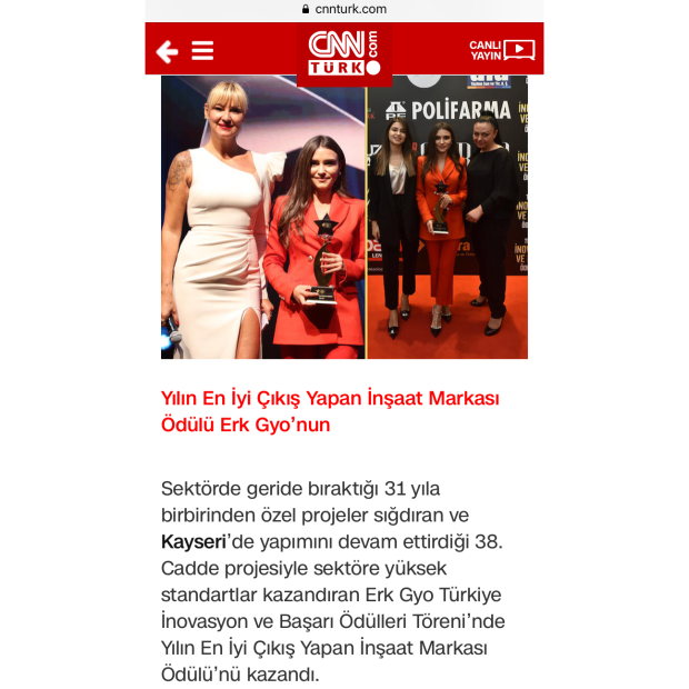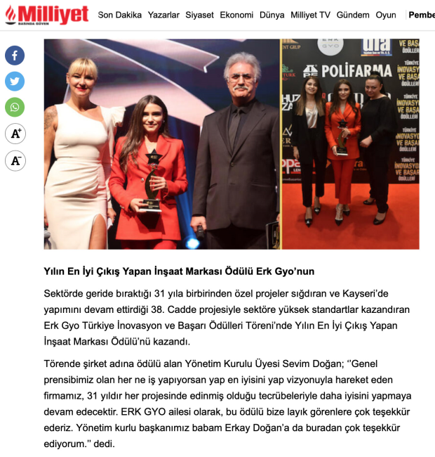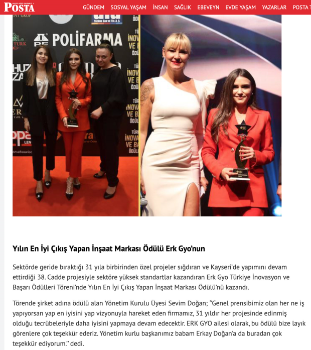 Erk Gyo ailesi olarak bize bu ödülü layık gören herkese çok teşekkür ediyoruz.31 yıldır her projemizde edindiğimiz tecrübelerimizle daha iyisini yapmaya devam edeceğiz.